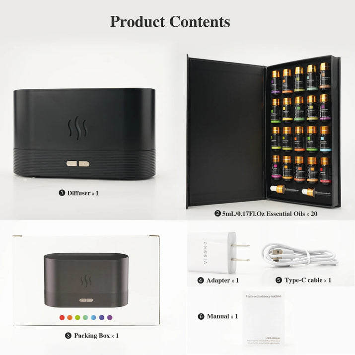 MAYJAM Essential Oil Humidifier Gift Set 20 Bottles Aroma Oils Lavender Eucalyptus Vanilla with Flame Air Diffuser Humidifier